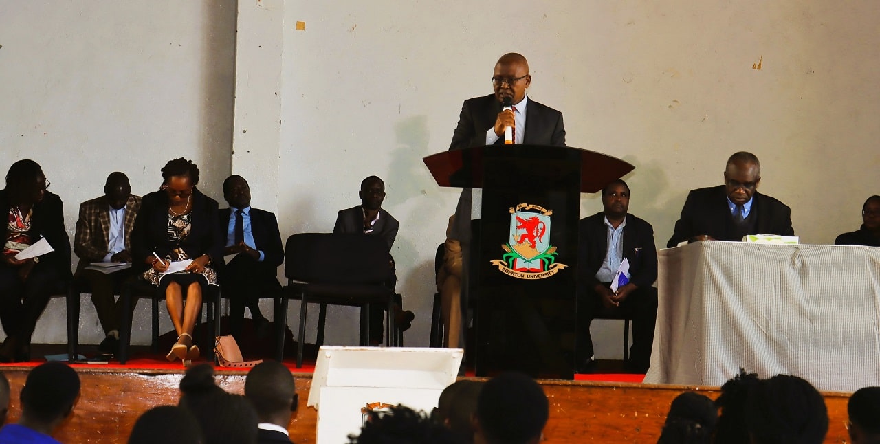 Prof. Isaac Kibwage outlined the financial challenges the university has been undergoing and emphasized the need for the new leaders to prioritize their duties.