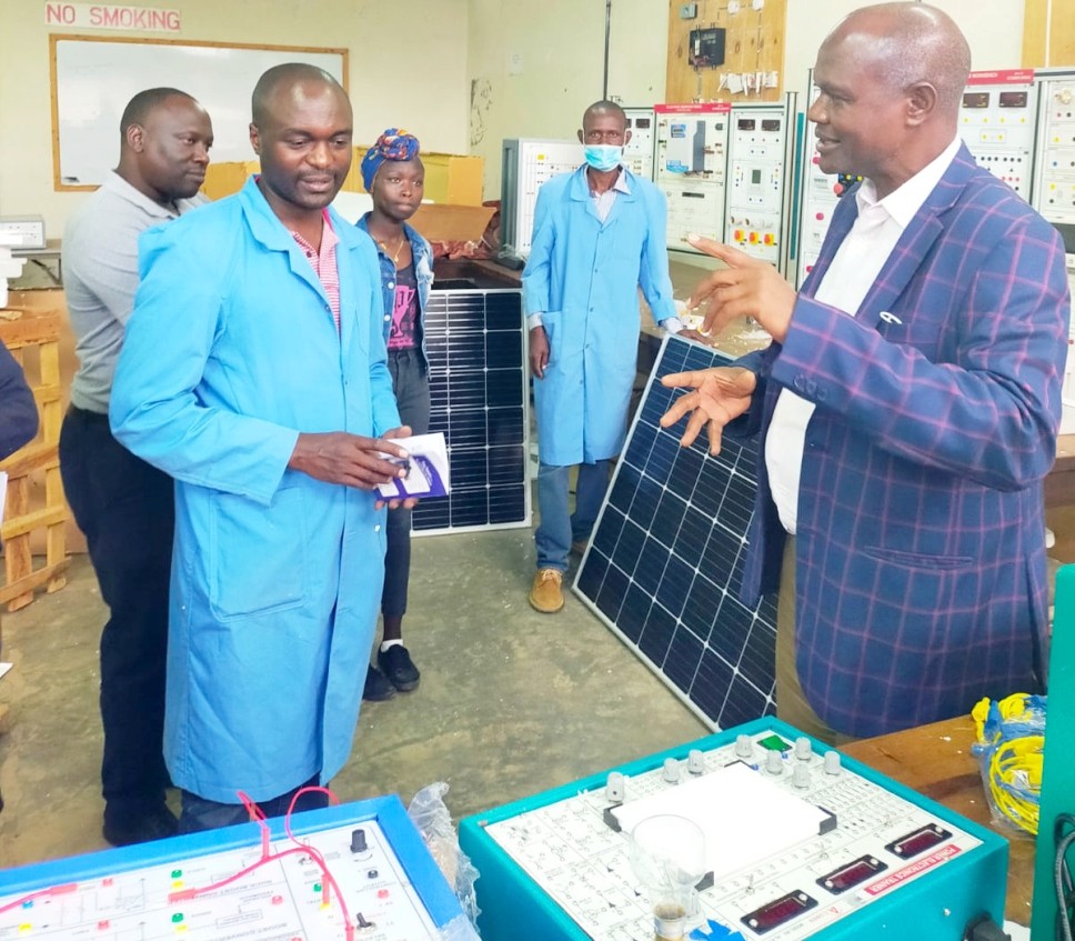 The Dean, Faculty of Engineering and Technology, Prof. Japheth O. Onyando, receives electrical equipment worth Ksh2 million donated by GIZ on 15 November 2021. The donation was made possible by Mr Germano Mugambi of the Department of Electrical and Control Engineering, who is currently pursuing his Ph.D. degree in Germany.