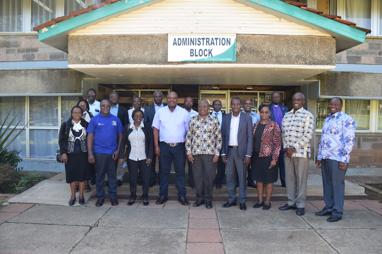 The delegation led by Mr Darius Ogutu, Director of University Education at the State Department for Higher Education and Research (SDHER) was received by the Vice-Chancellor Prof. Isaac Kibwage at the Main Campus on 8th December 2023.