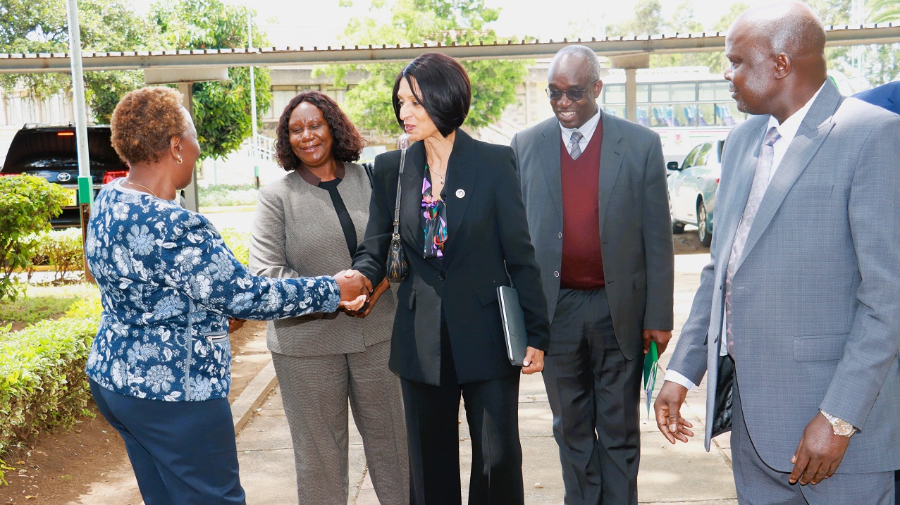 She was received by Egerton's leadership team, Led by Vice Chancellor Prof. Isaac Kibwage, flanked by the Deputy Vice Chancellor Academic Affairs and Research, Prof. Benard Aduda, and Deputy Vice Chancellor Administration Finance and Planning, Prof. Richard Mulwa.