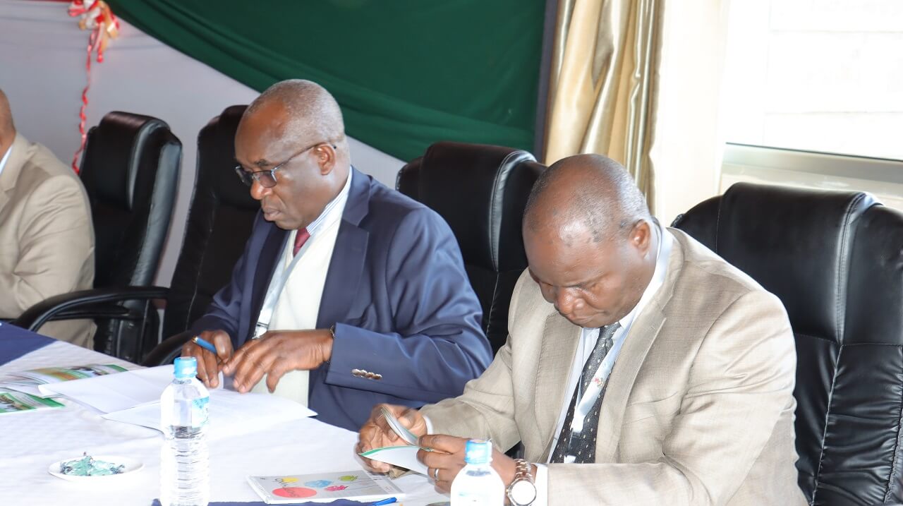 Egerton University Vice Chancellor Prof Isaac Kibwage (Right), Prof. Joshua Ogendo (Left), Prof. Guo Song (Michigan State University) Centre during the Capacity building workshop. (Photo: Kurian Musa/Egerton University)