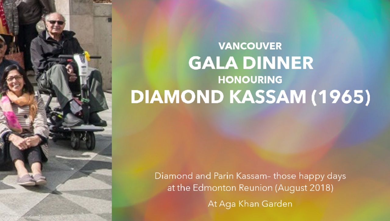 Sadru expressed amazement at his business success, noting that while he had to leave under sad circumstances due to the Nationalization policies of Tanzania, Kassam continued with his business skills after retirement. Sadru said: “I am told that even with a disability you were able to sell 4 used cars on the phone while attending the Edmonton Reunion in 2018.