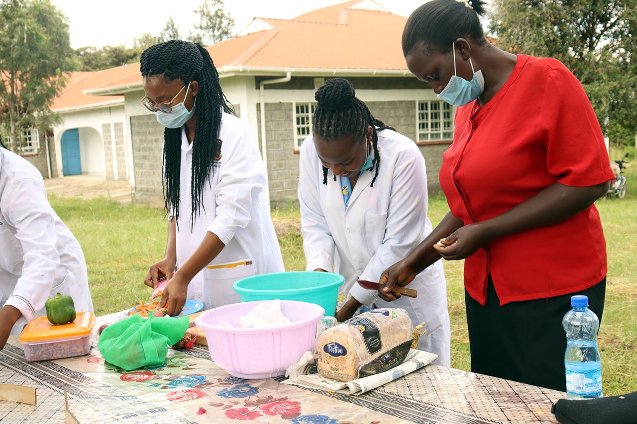Thato Gokatweng, Thato Makgetho and Nyalazdani Boitshwarelo from Boitekanelo College, supported by Egerton University students from FOND Department, were the key trainers on mechanisms for improving nutrition and health outcomes, dietary management for diabetes, and lifestyle management and monitoring of diabetes. The three are pursuing Bachelor of Science degree in Nutrition and Dietetics at Botswana’s Boitekanelo College and are on an exchange programme at Egerton University. The community members were also trained on how to prepare diabetic diets and provided with recipes and menus. The aim of the training was to educate community members on how to manage diabetes through diet and lifestyle controls. Diabetes is a major cause of blindness, kidney failure, heart attack, stroke and lower limb amputation. Healthy diet, physical activity and avoiding tobacco use can prevent or delay type 2 diabetes. In addition, diabetes can be treated and its consequences avoided or delayed with medication, regular screening and treatment for complications.