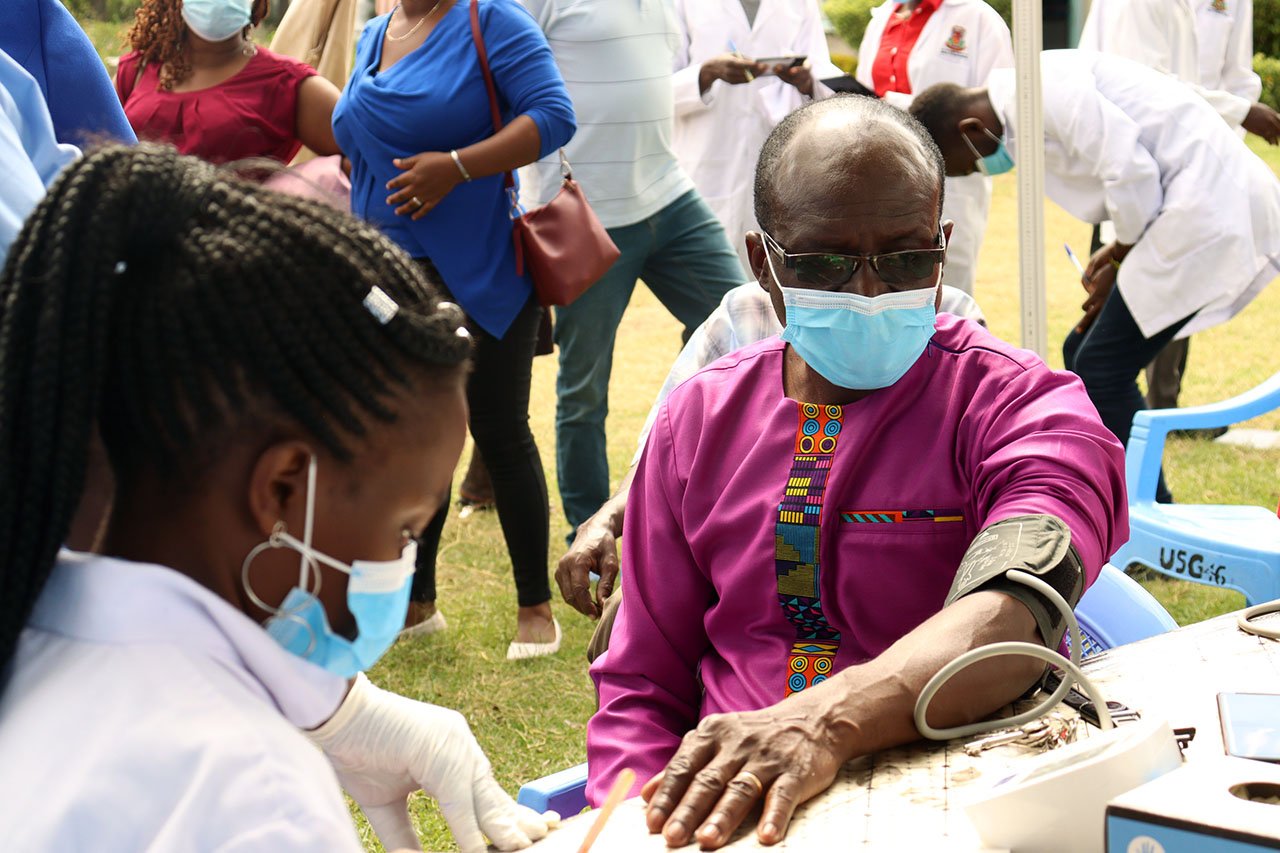 Students from Egerton University’s Department of Food, Nutrition & Dietetics (FOND), Boitekanelo College’s Department of Nutrition and Dietetics, and Clinical Nutritionists from Nakuru Level 5 Hospital facilitated the nutrition education and counselling of diabetic patients and clients. The Clinical Nutrition and Dietetics experts assessed the client’s nutritional status by checking their weights, heights and body mass index (BMI). The checking of blood pressure and random blood sugar testing were performed by medical staff from Mangu Health Centre and ACK – Imani Medical Centre, Kiamunyi, who also gave free diabetes medicines and a talk on diabetes care. Community Health Volunteers (CHVs) also supported the team through mobilization of the community and follow-ups.