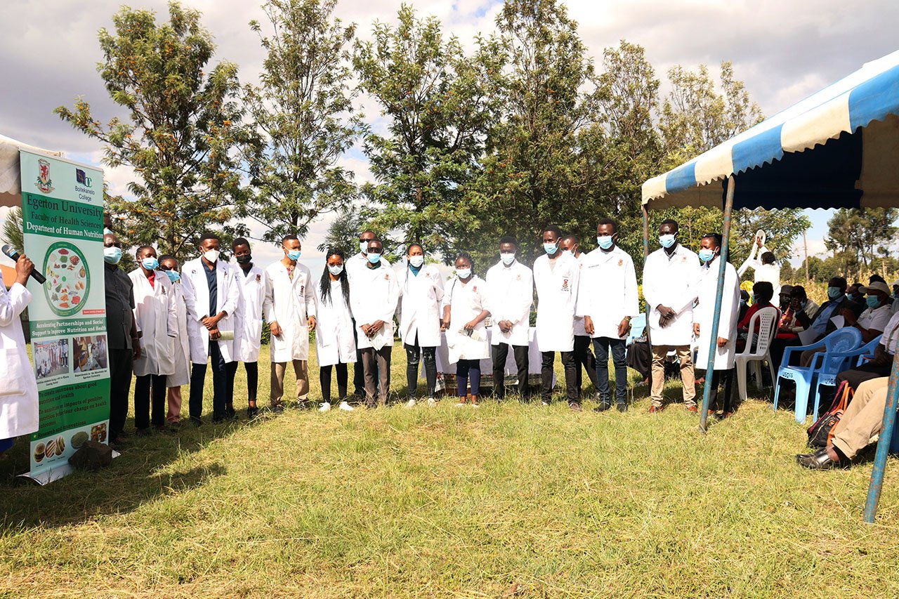 Egerton University staff and students, together with those from Boitekanelo College of Health Sciences, Botswana, joined the Mangu Diabetic Support Group in a community nutrition outreach activity to mark this year’s World Diabetes Day at Mangu Health Centre in Rongai Sub-County, Nakuru County. The event, which was celebrated on Sunday 14 November 2021, was also attended by staff from the Nakuru County Health Department led by Dr. Benedict Osore. Dr. Osore, who was the chief guest at the event, is the Director of Medical Services for Nakuru County. According to the International Diabetes Federation (IDF), the global theme for 2021-2023 World Diabetes Day is ‘Access to Diabetes Care’.